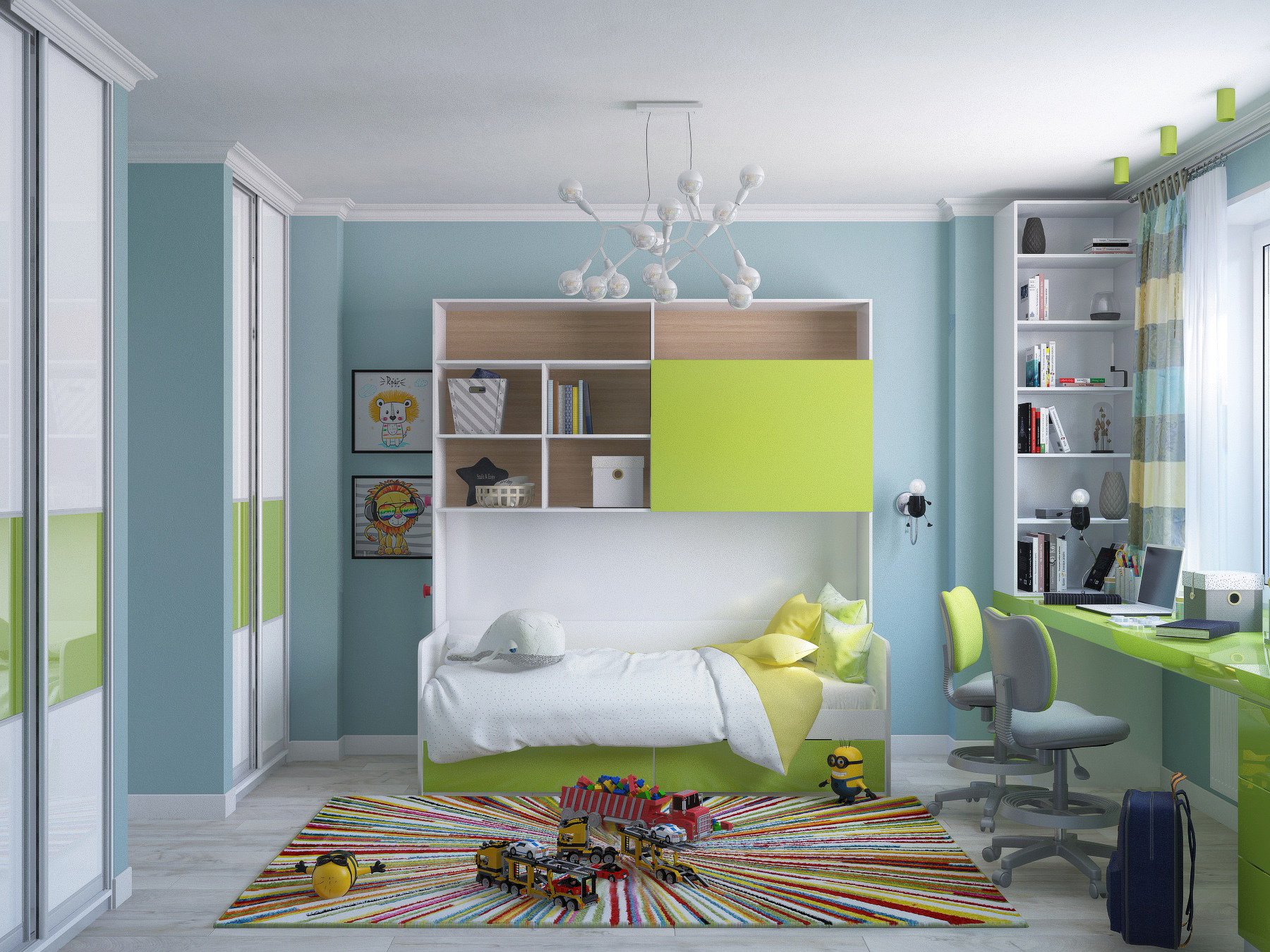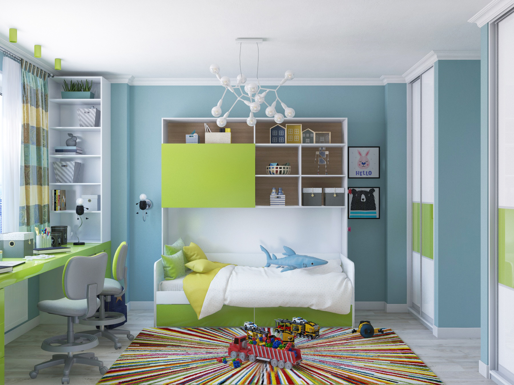 Каждая комната в этой квартире создана по индивидуальным запросам и пожеланиям членов семьи. Яркие, динамичные детские с кучей мест хранения и удобным столом для интеллектуальных занятий. Общие зоны — с преобладанием теплых цветовых решений, аристократических акцентов и функциональной мебелью. Приватная зона, где солирует цвет молочного шоколада, и атмосфера соответствующая — мягкая и обволакивающая, дарующая покой в душе. Трехкомнатная квартира исполнила мечты взрослых и детей, здесь можно всем вместе пообщаться за обеденным столом, посмотреть фильм, расположившись на мягком диване, или наоборот поиграть в роботов, машинки на своей «территории»!