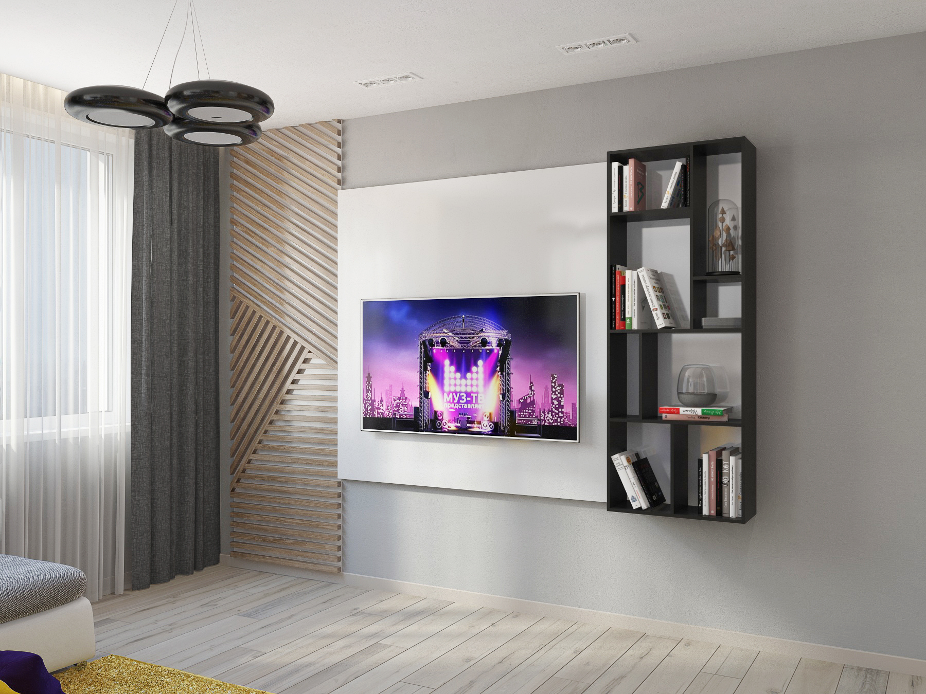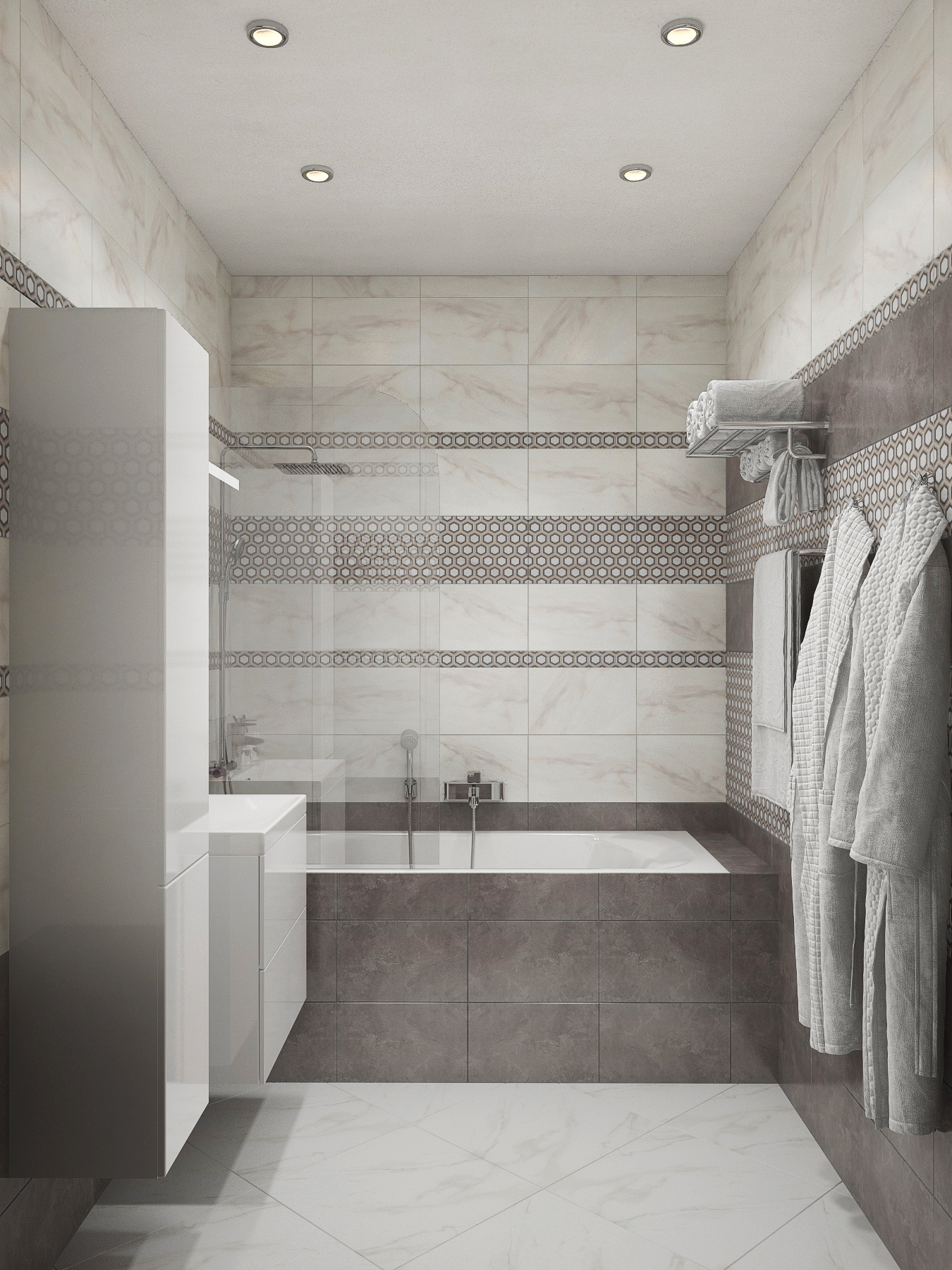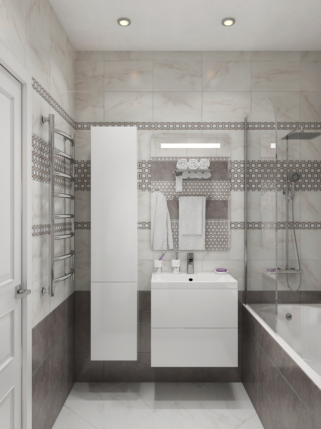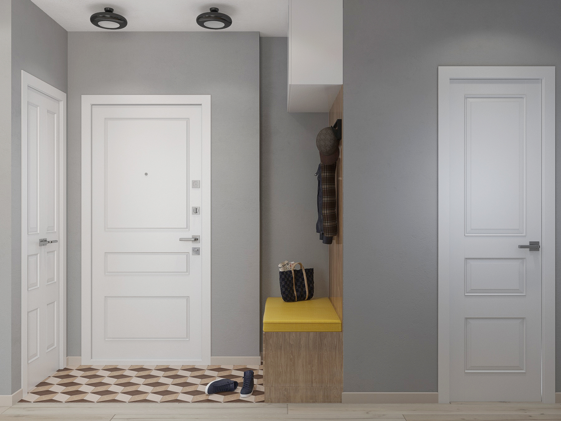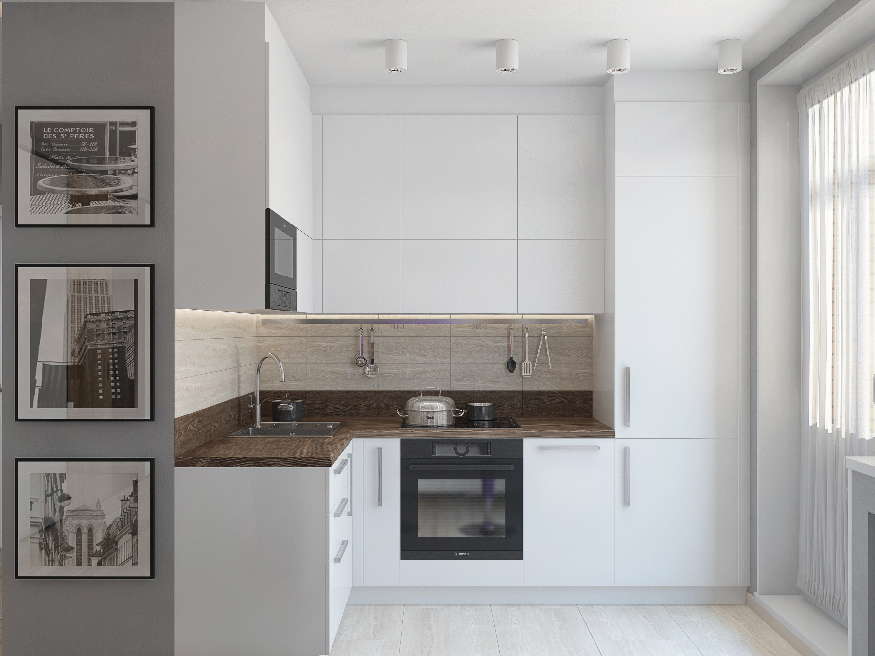 Небольшая по площади квартира — очень функциональна: кухня-студия с полноценной рабочей зоной, комфортным диваном и вместительным стильным шкафом-купе; спальня, оформленная в актуальном эко-стиле; два санузла- один с ванной, второй выступает в роли постирочной; при входе выделено место под открытые вешалки и хранение обуви. Комбинация светлых стен с напольным покрытием теплых древесных оттеков, акценты в виде деревянных реек, зеркал, плитки в форме «кабанчика» создают непринужденную атмосферу современной квартиры, где можно пообщаться с друзьями и расслабиться в компании друг друга.
