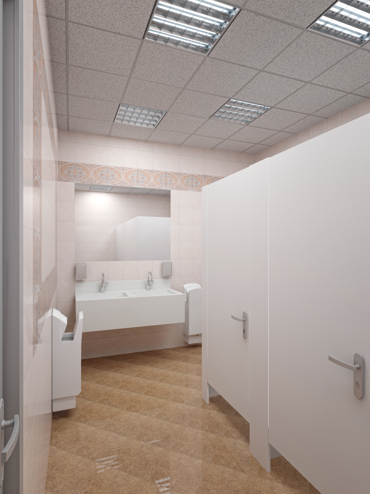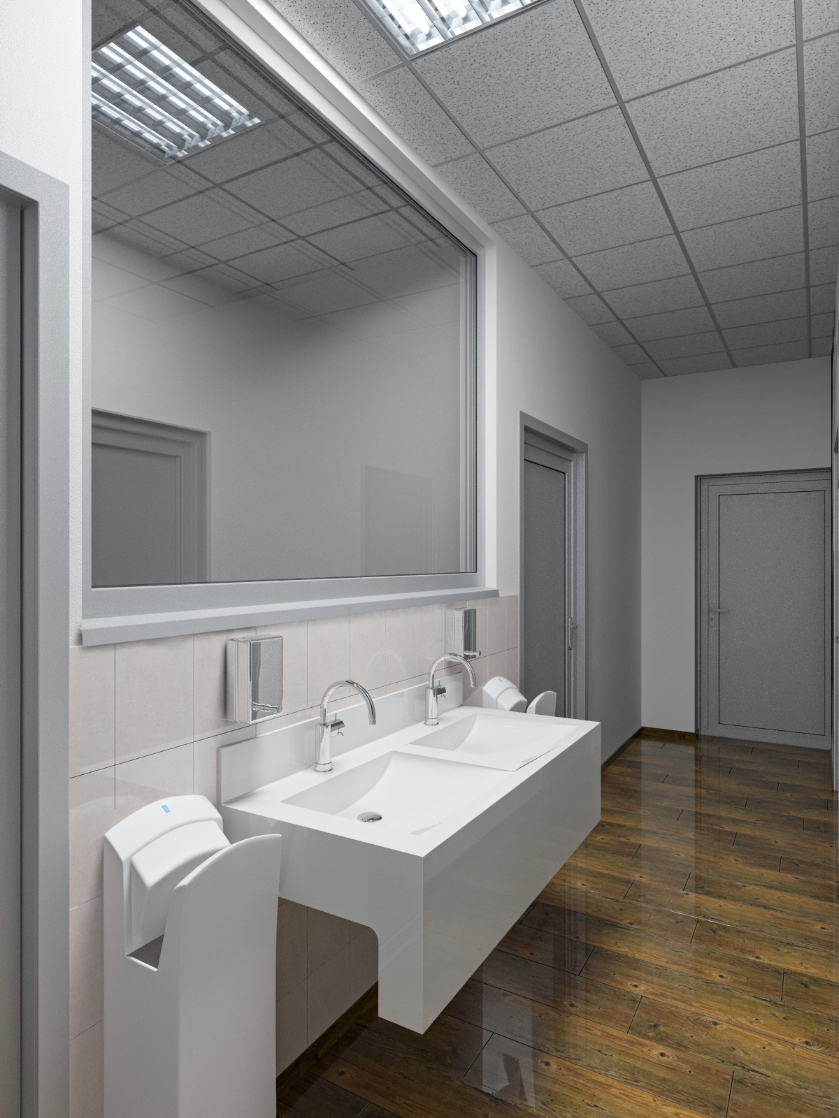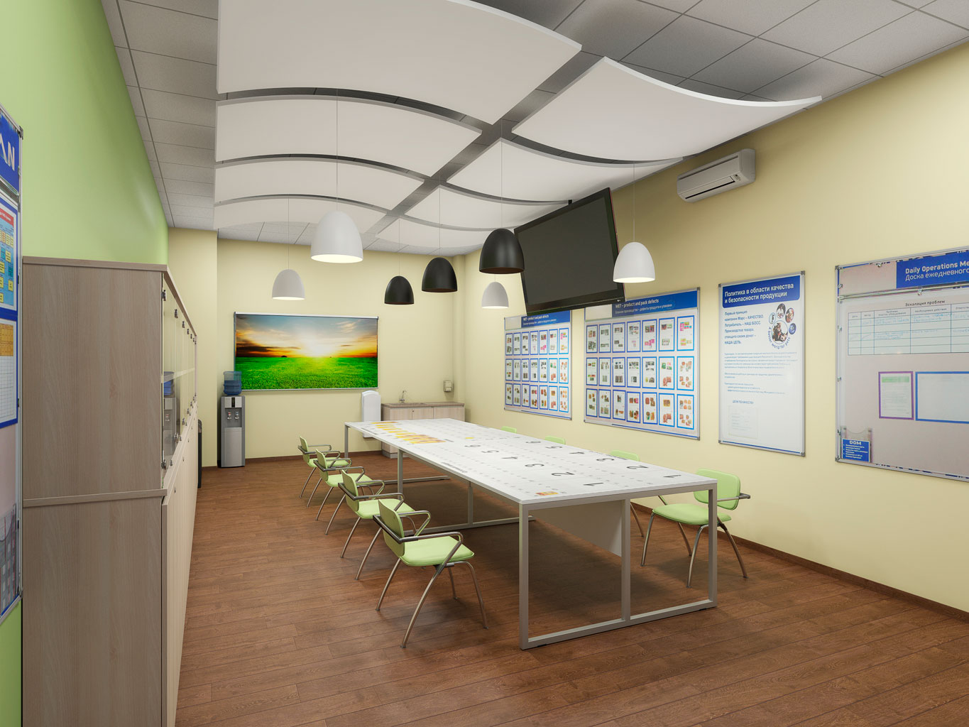 Санузлы, производственные блоки, офисные рабочие зоны и зоны отдыха.