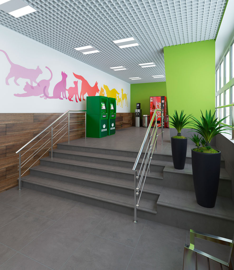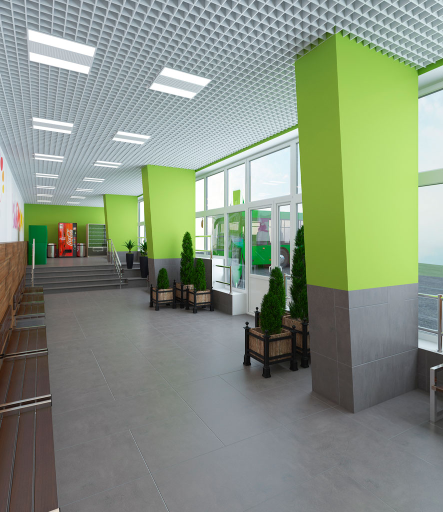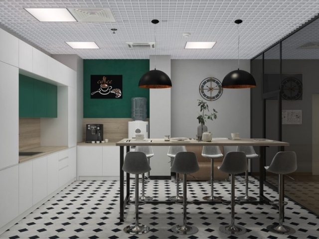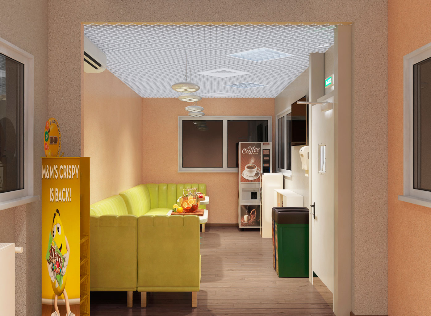 Санузлы, производственные блоки, офисные рабочие зоны и зоны отдыха.